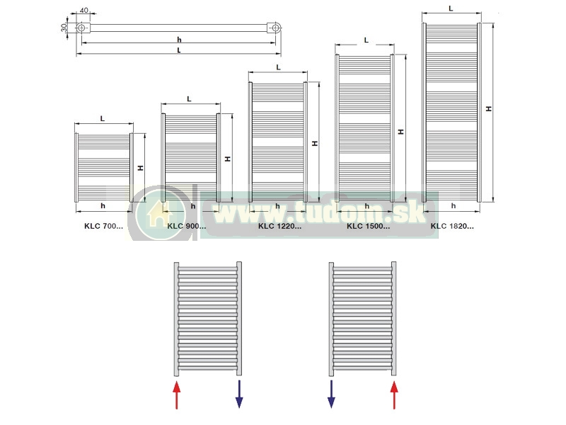 Kúpeľňový radiátor KORALUX LINEAR CLASSIC (KLC) je rúrkové vykurovacie teleso so spodným bočným pripojením s pripojovacím rozstupom h (hodnota h je odvodená z dĺžky L).