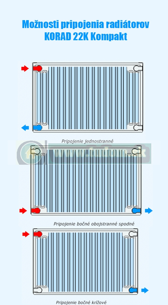 Radiátory KORAD 22K s bočným pripojením majú po dva vývody na oboch stranách, takže je možné ich pripojiť vľavo aj vpravo.