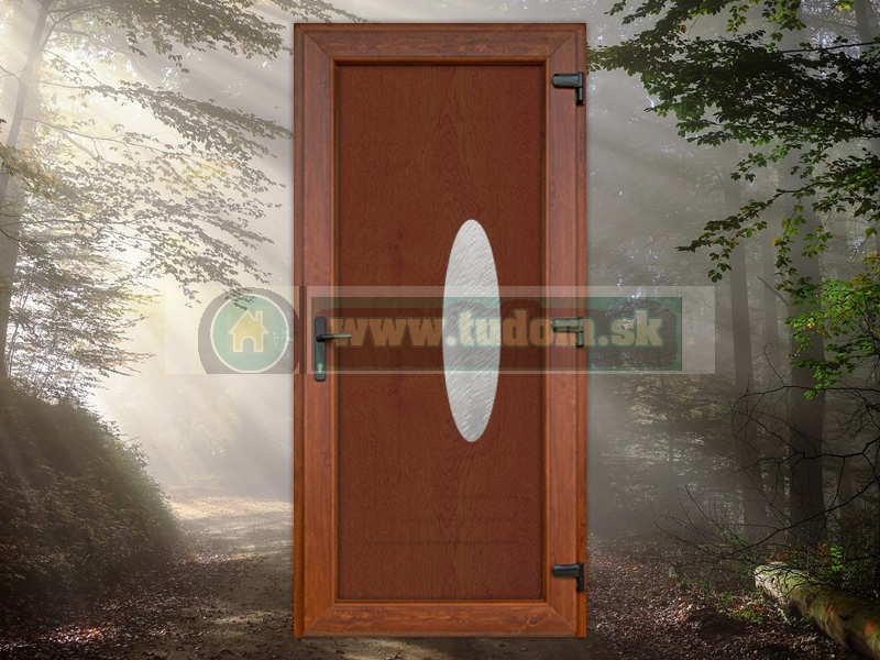 • Vchodové vstupné dvere do domu lacno. Plastové dvere so sklom biele,  zlatý dub, dvojfarebné. Výstuže oceľové, nastaviteľné pánty, rám - zárubňa, ceny, zľavy, darčeky tudom.sk Obojstranné PVC opláštenie, farebná stálosť. Dodanie zadarmo.
