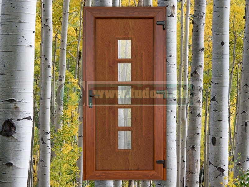 • Kvalitné plastové  vchodové dvere do domu, farba zlatý dub od slovenského dodávateľa.  Komorové profily: 6 (rám), 5 (dvere). ýstuže (rám aj dvere): pozinkovaná oceľ. Bežne dostupné rozmery: 88x200 cm, 98x200 cm, 98 x 208 cm. Nové plastové dvere tudom.sk